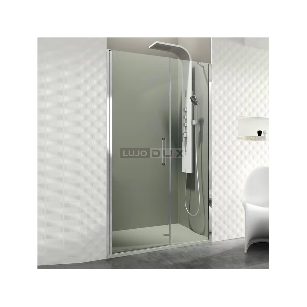 Mampara de ducha Open E fijo y puerta abatible con cierre a fijo.
