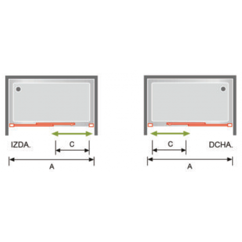 Por defecto, el elemento fijo y puerta corredera tienen el mismo ancho. La relación de anchos puede modificarse sin recargo económico siempre que técnicamente sea posible.